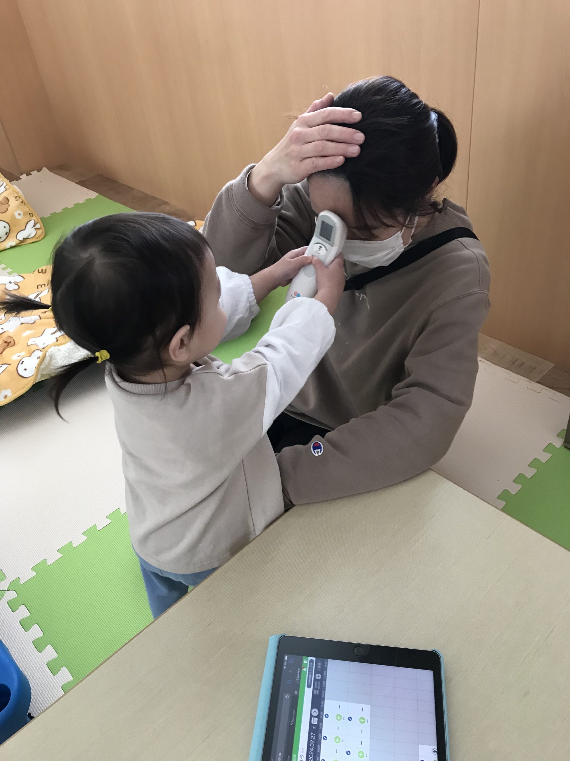 今日はこの可愛いお友達が先生の真似っこをして測っていました💛